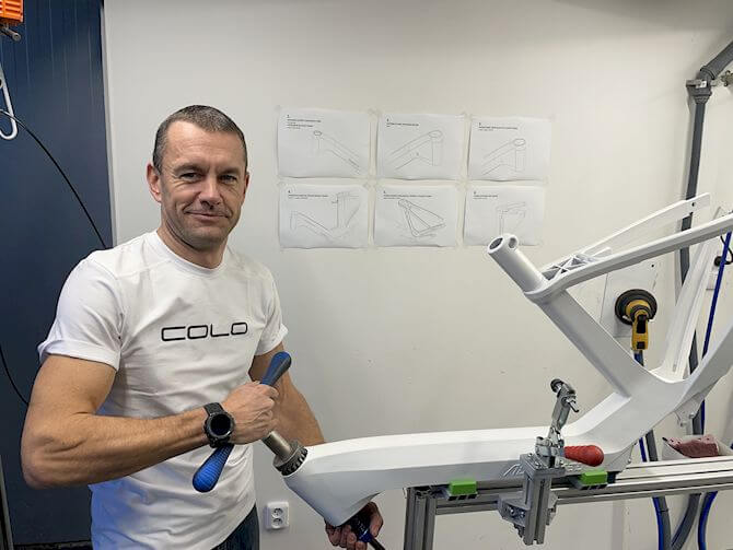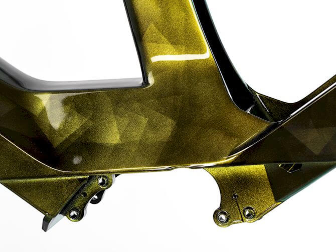 Polyamid s uhlíkovým vláknem. Pokročilá technologie. Udržitelnost. Minimální odpad. Rám za pouhé 2 minuty. Lisování, postprodukce i lakování – vše pod jednou střechou v České republice.